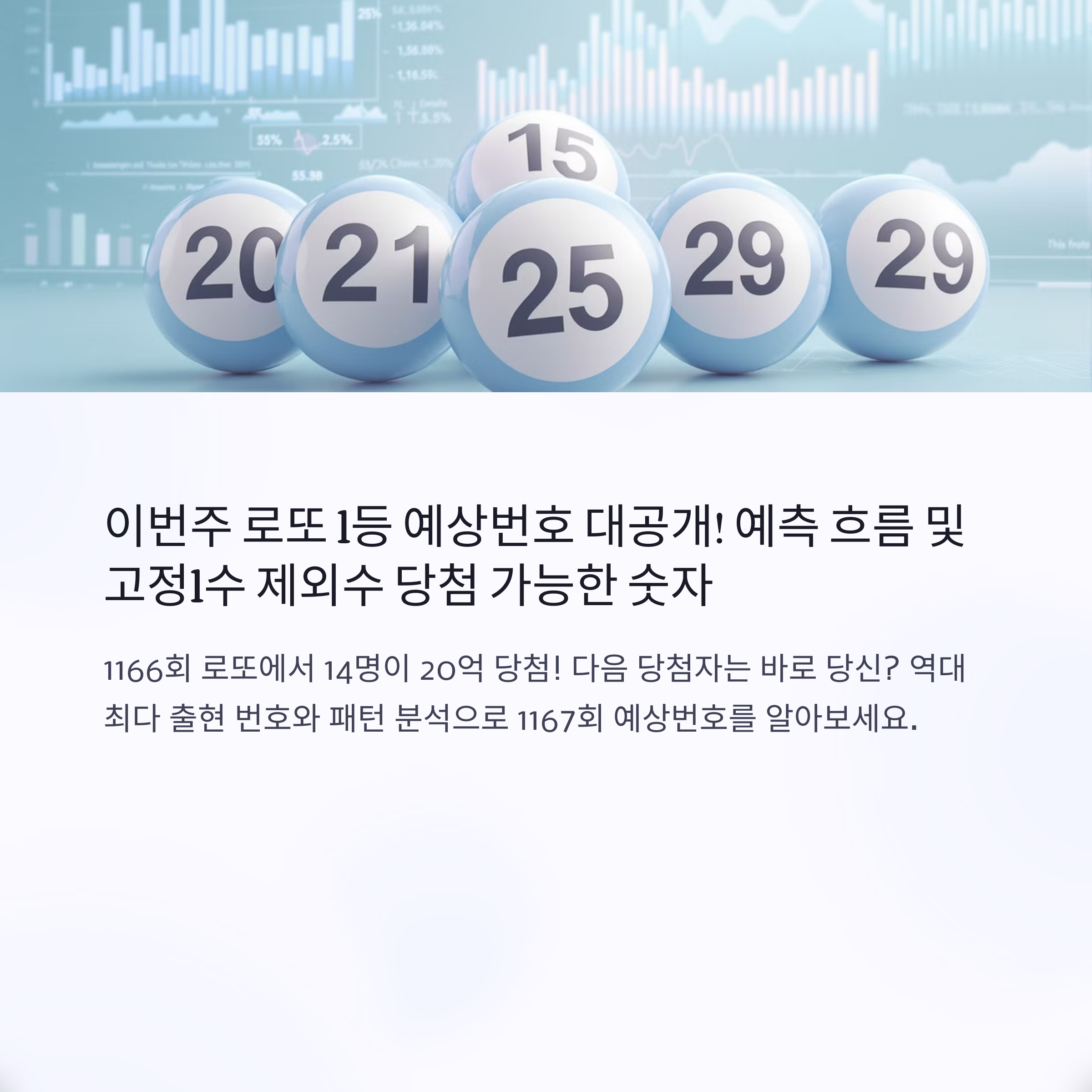 이번주 1167회 로또 1등 예상번호를 분석해보고자 합니다. 최근 5주간의 로또 당첨번호 패턴을 보면 홀수와 짝수의 비율, 연속된 숫자의 출현 여부, 그리고 미출현 번호와 자주 출현한 번호들의 경향성을 파악할 수 있습니다. 1166회 로또 당첨번호는 14, 23, 25, 27, 29, 42에 보너스 번호 16으로 결정되었습니다. 1166회 로또 결과에서는 1등 당첨자가 14명이나 배출되었고, 각 당첨자는 무려 20억 7천만원이라는 큰 금액을 받았습니다. 이러한 로또 당첨 패턴과 흐름을 분석하여 다음 회차인 1167회 로또 예상번호를 예측해보겠습니다.