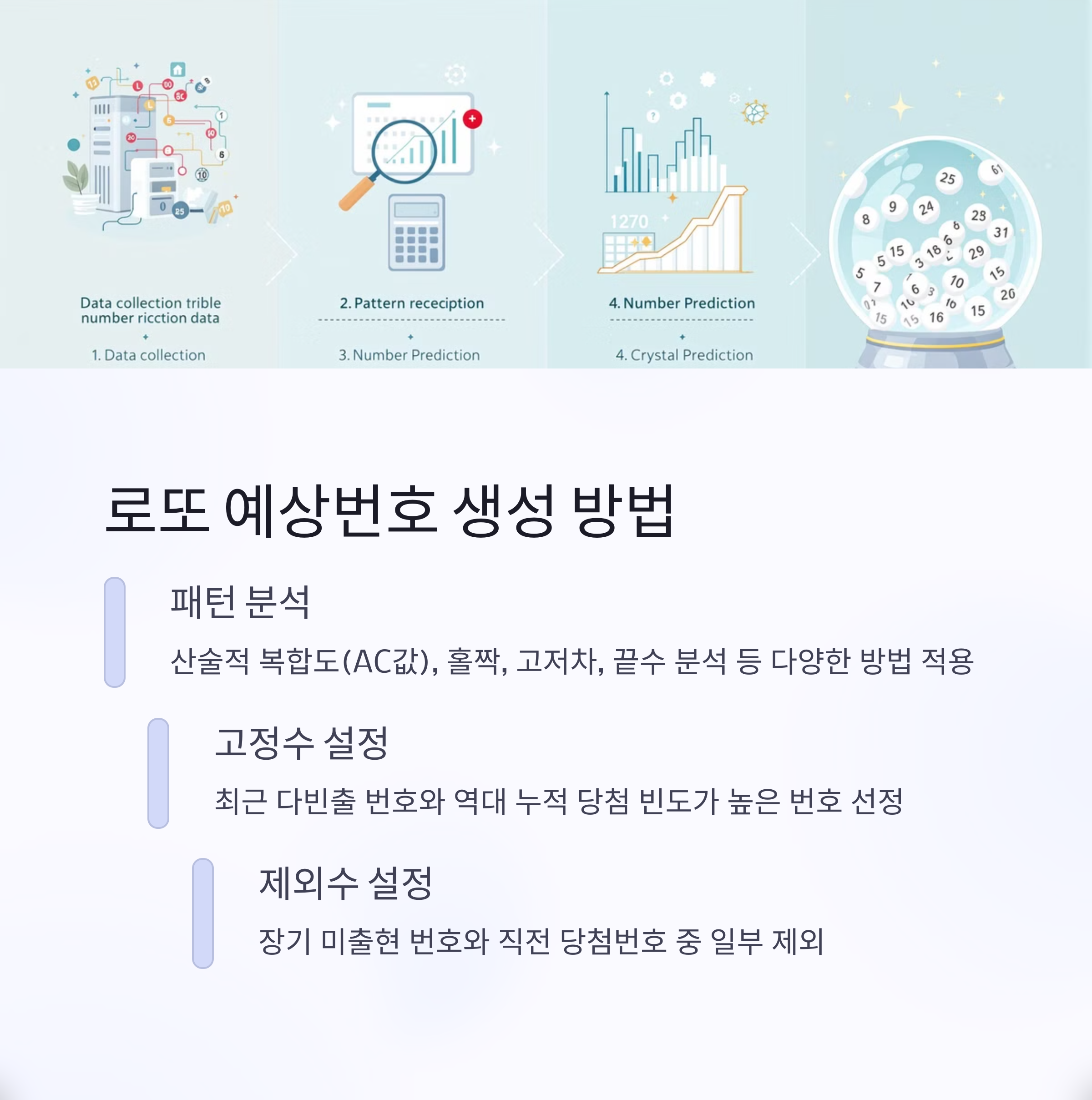 주요 분석법으로는 산술적 복합도(AC값) 분석, 홀짝 분석, 고저차 분석, 끝수 분석 등이 있습니다. 이러한 방법을 적용하여 1167회 로또 예상번호를 생성해보겠습니다.